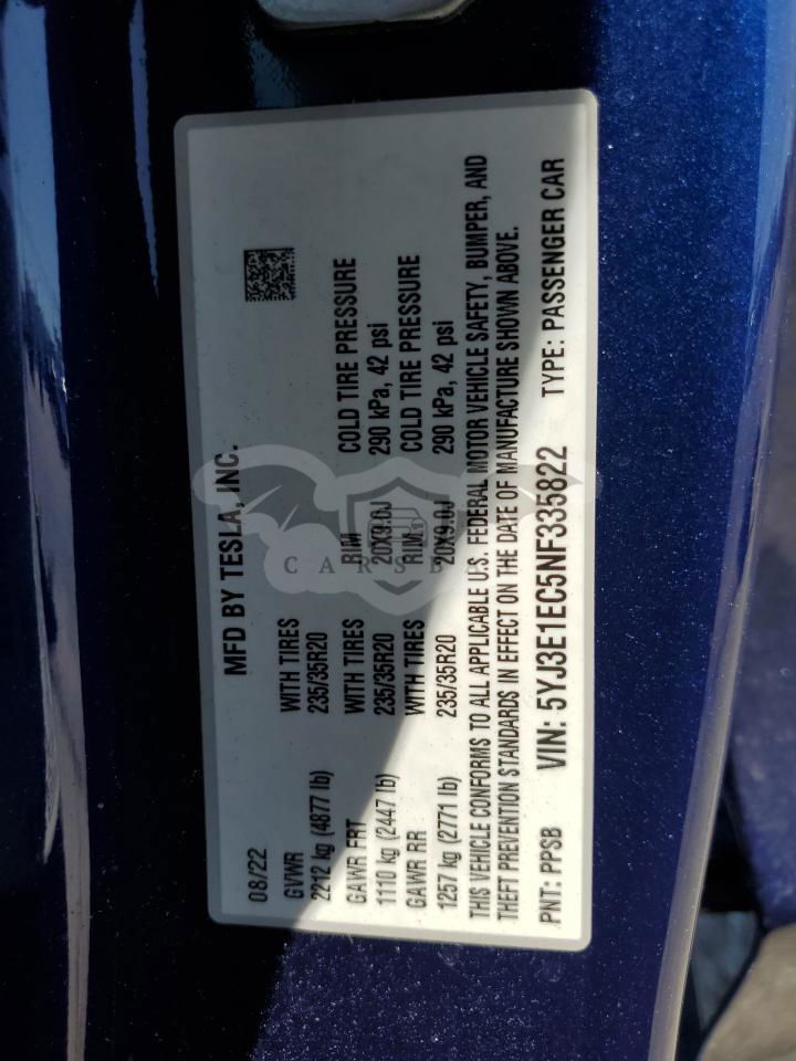 • VIN: 5YJ3E1EC5NF335822