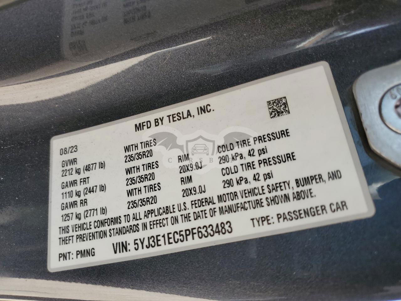 • VIN: 5YJ3E1EC5PF633483