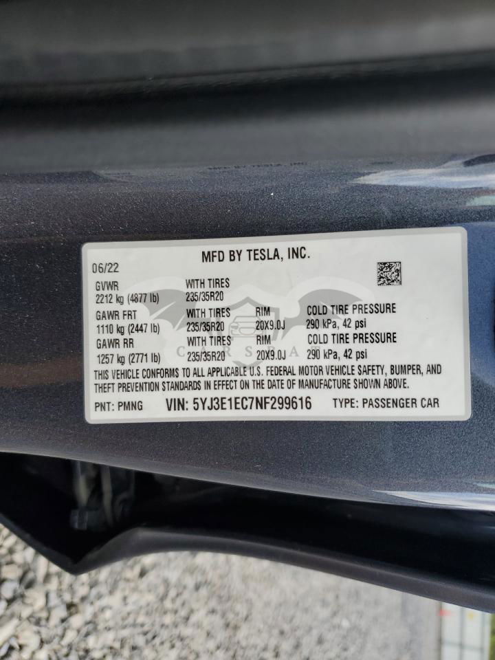• VIN: 5YJ3E1EC7NF299616