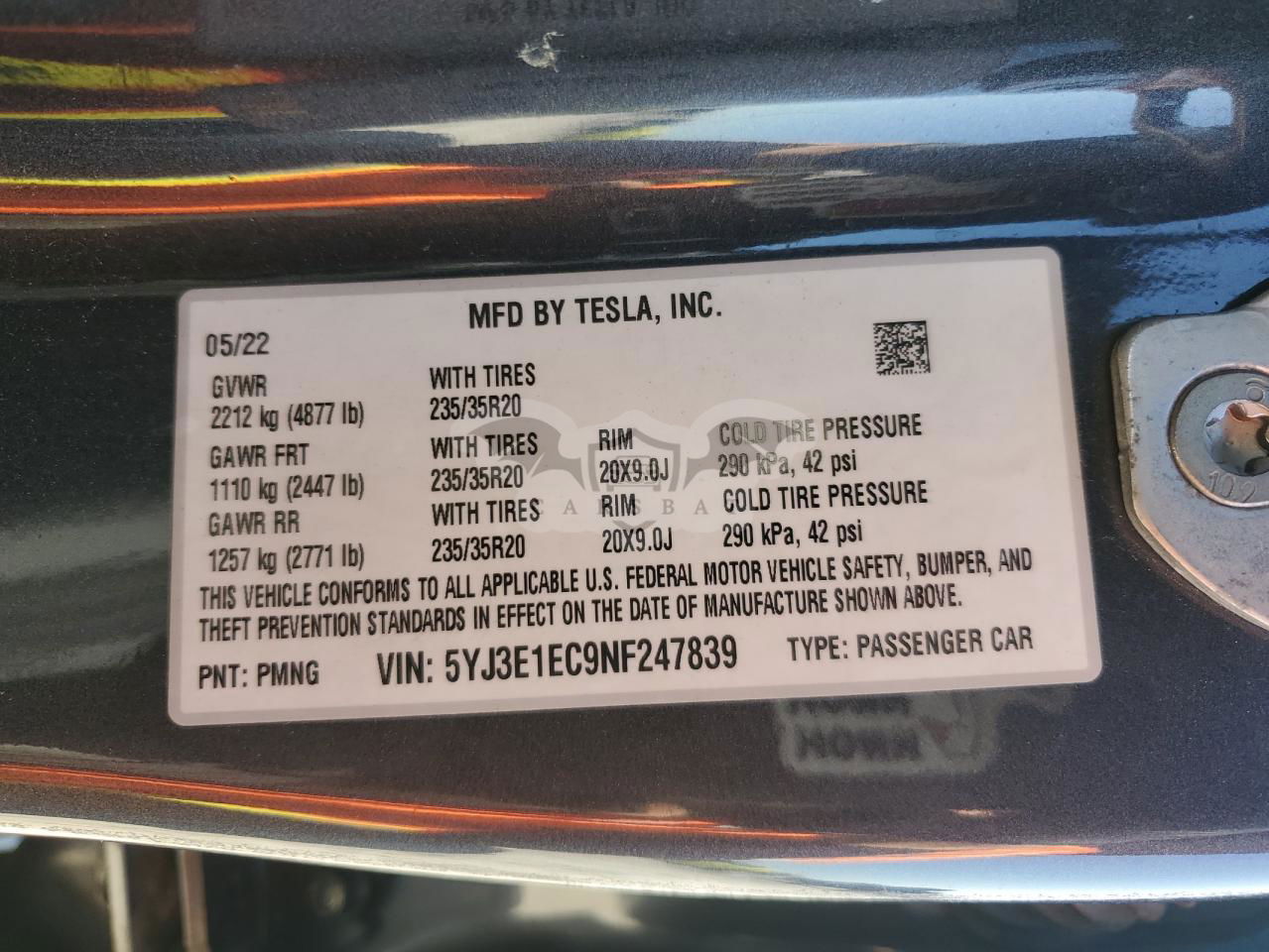 • VIN: 5YJ3E1EC9NF247839