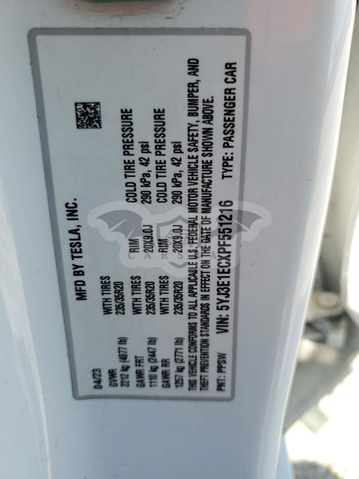 • VIN: 5YJ3E1ECXPF551216
