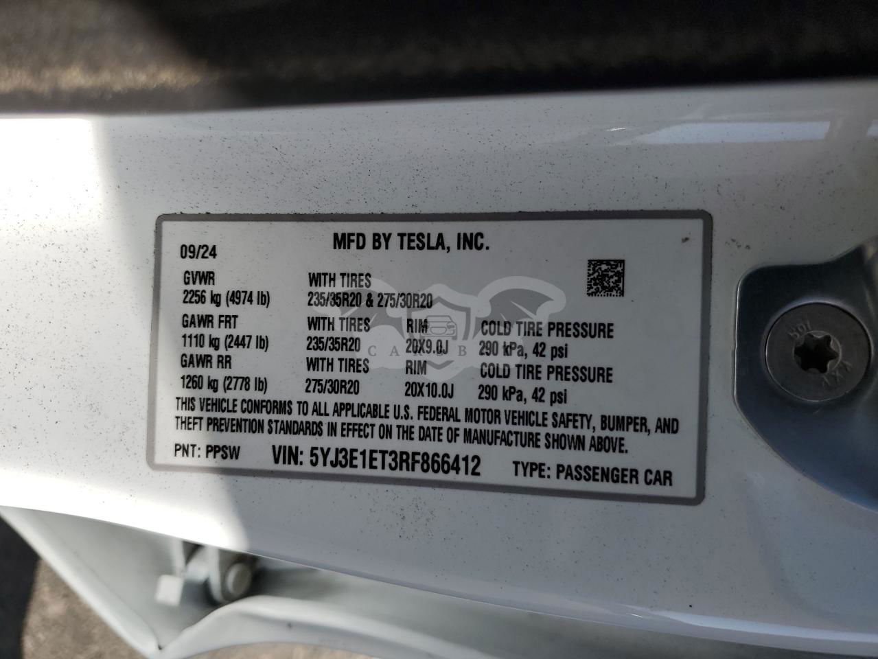• VIN: 5YJ3E1ET3RF866412