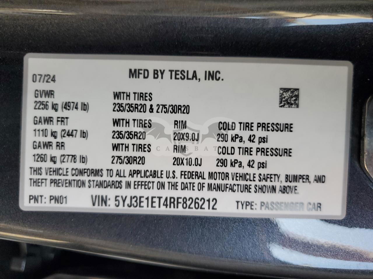• VIN: 5YJ3E1ET4RF826212
