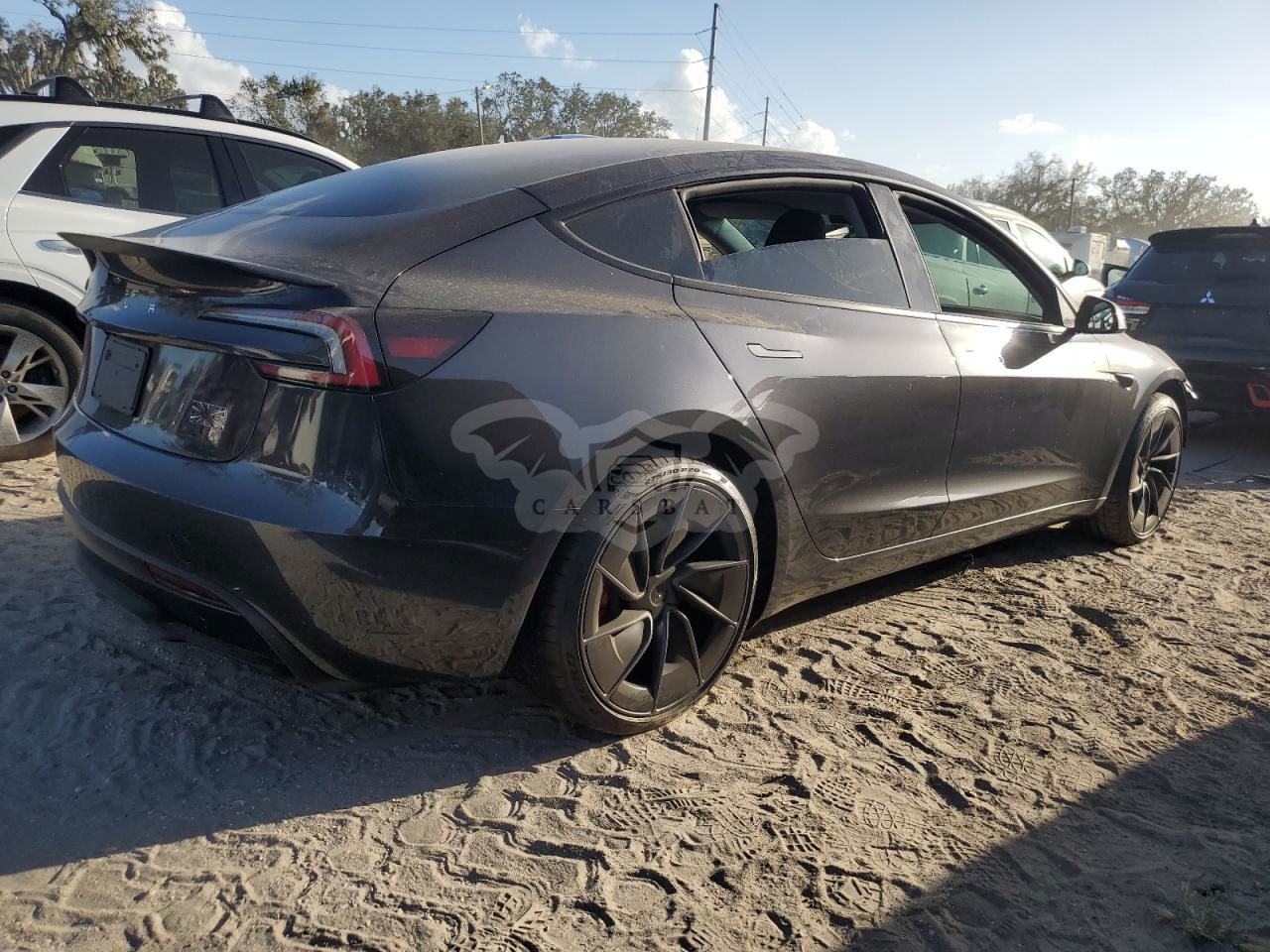 Ciemnoszary Tesla Model 3 2024 roku | Elektryczny