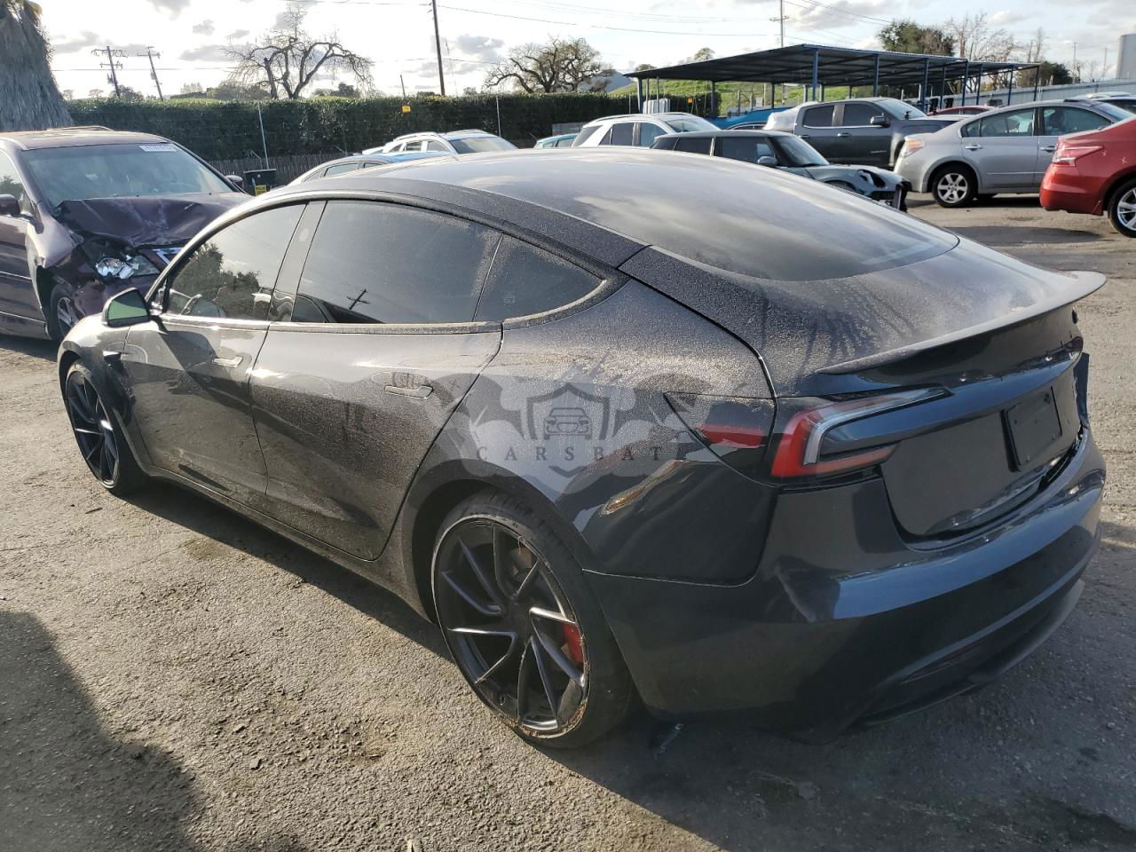 Ciemnoszary Tesla Model 3 2024 roku | Elektryczny
