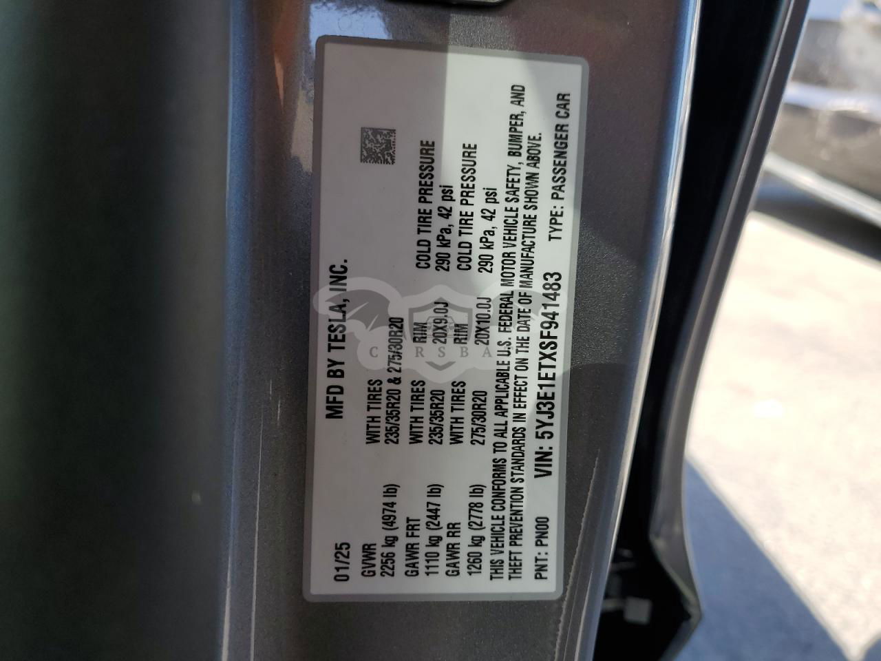 • VIN: 5YJ3E1ETXSF941483