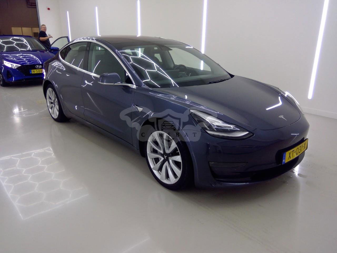 Ciemnoniebieski Tesla Model 3 Long Range 75 kWh 2019 roku | Elektryczny