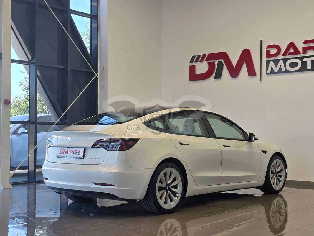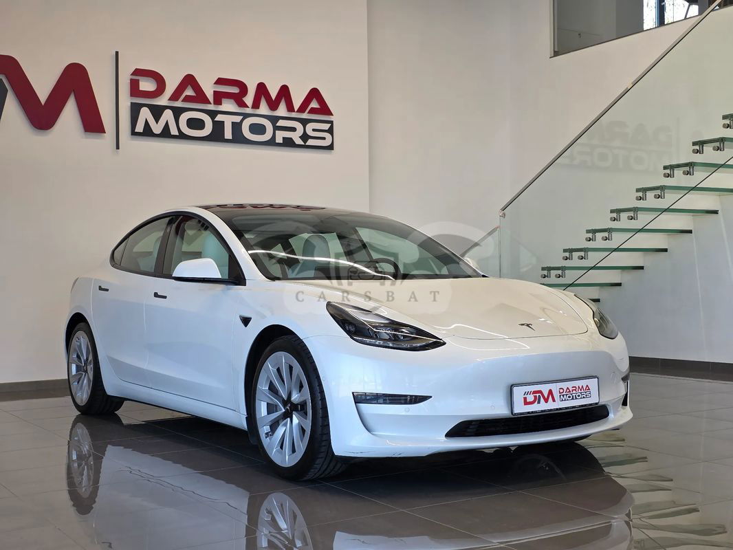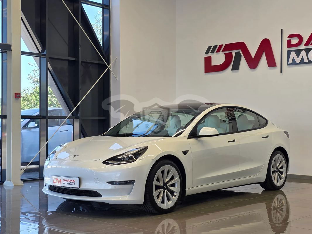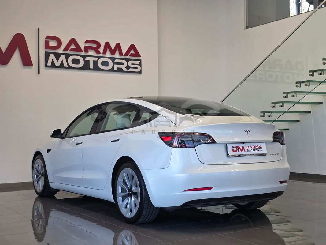 Biały Tesla Model 3 Langstreckenbatterie Allradantrieb Dual Motor 2021 roku | Elektryczny