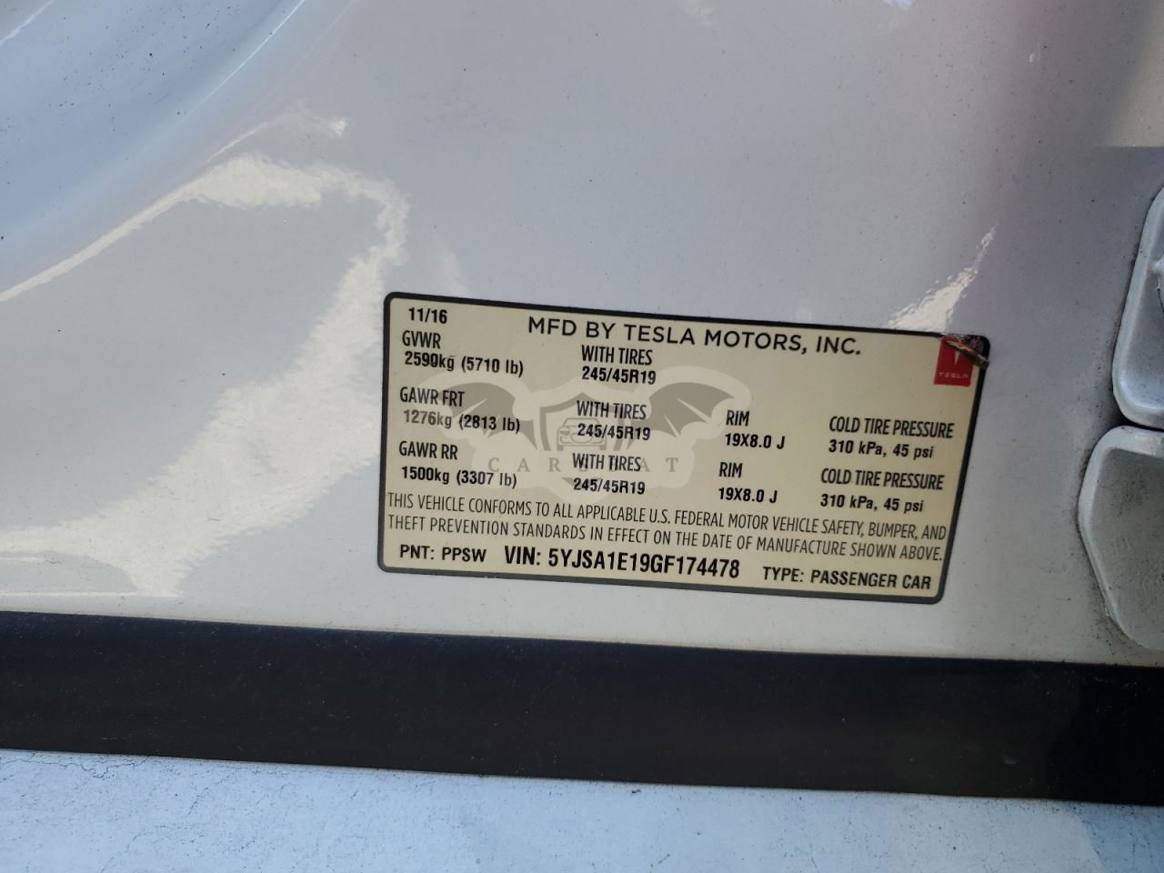 • VIN: 5YJSA1E19GF174478