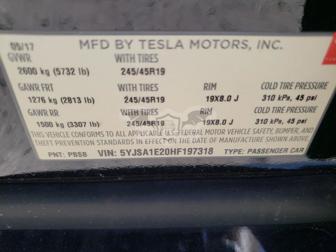 • VIN: 5YJSA1E20HF197318