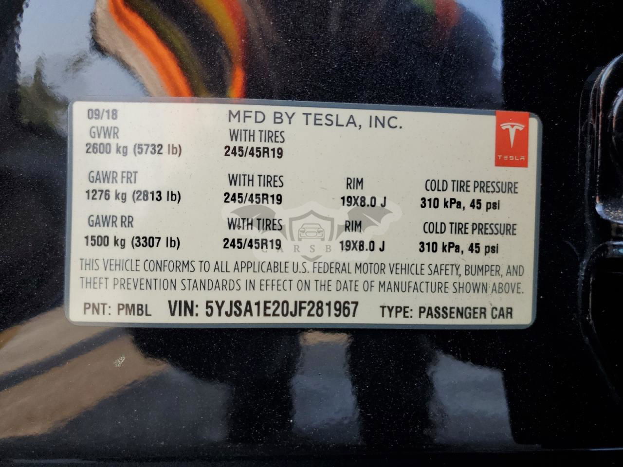 • VIN: 5YJSA1E20JF281967