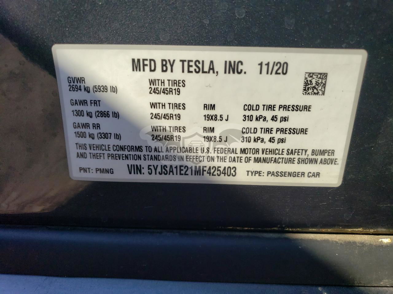 • VIN: 5YJSA1E21MF425403