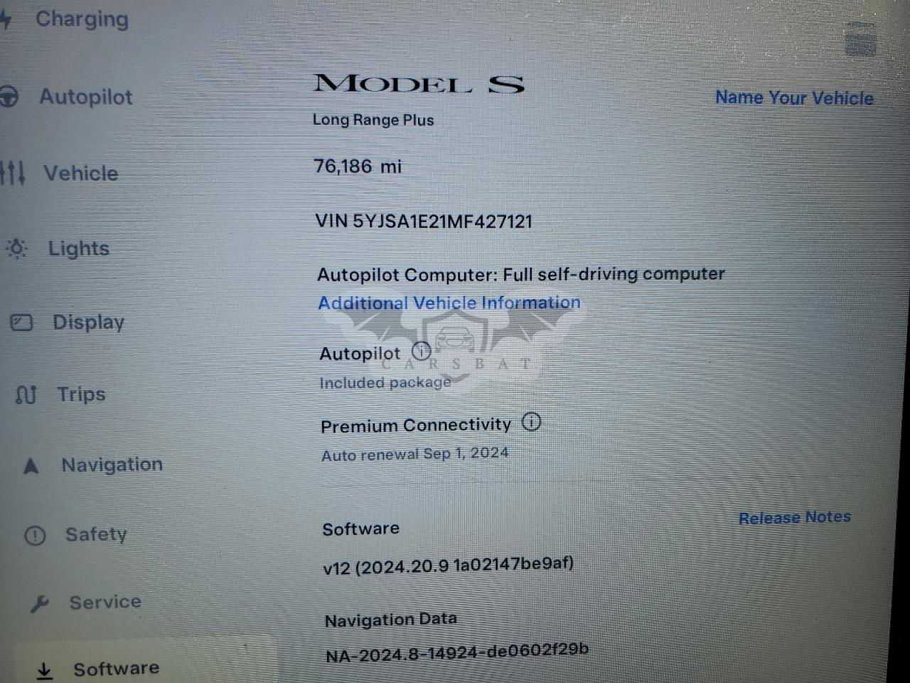• VIN: 5YJSA1E21MF427121