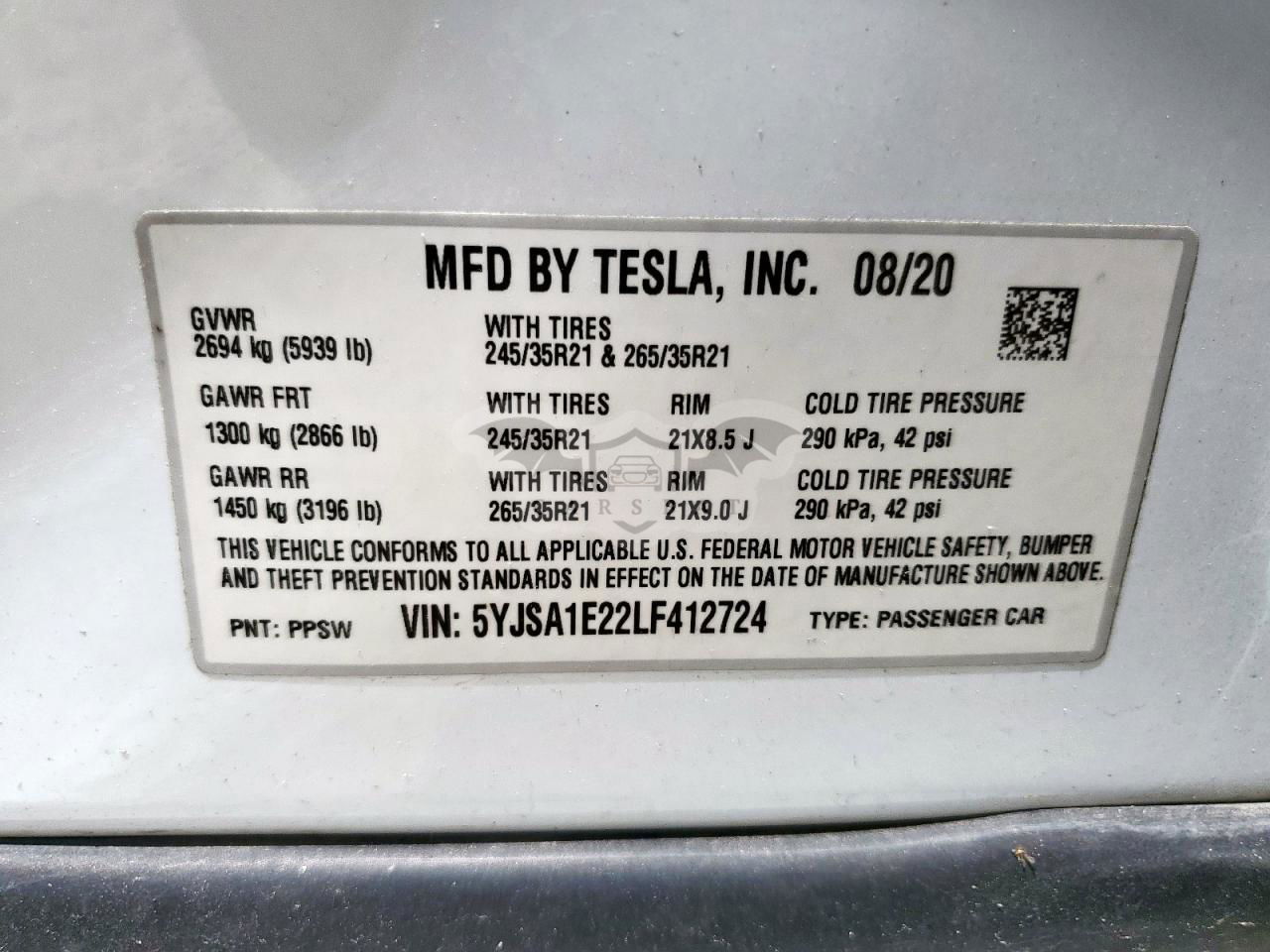 • VIN: 5YJSA1E22LF412724