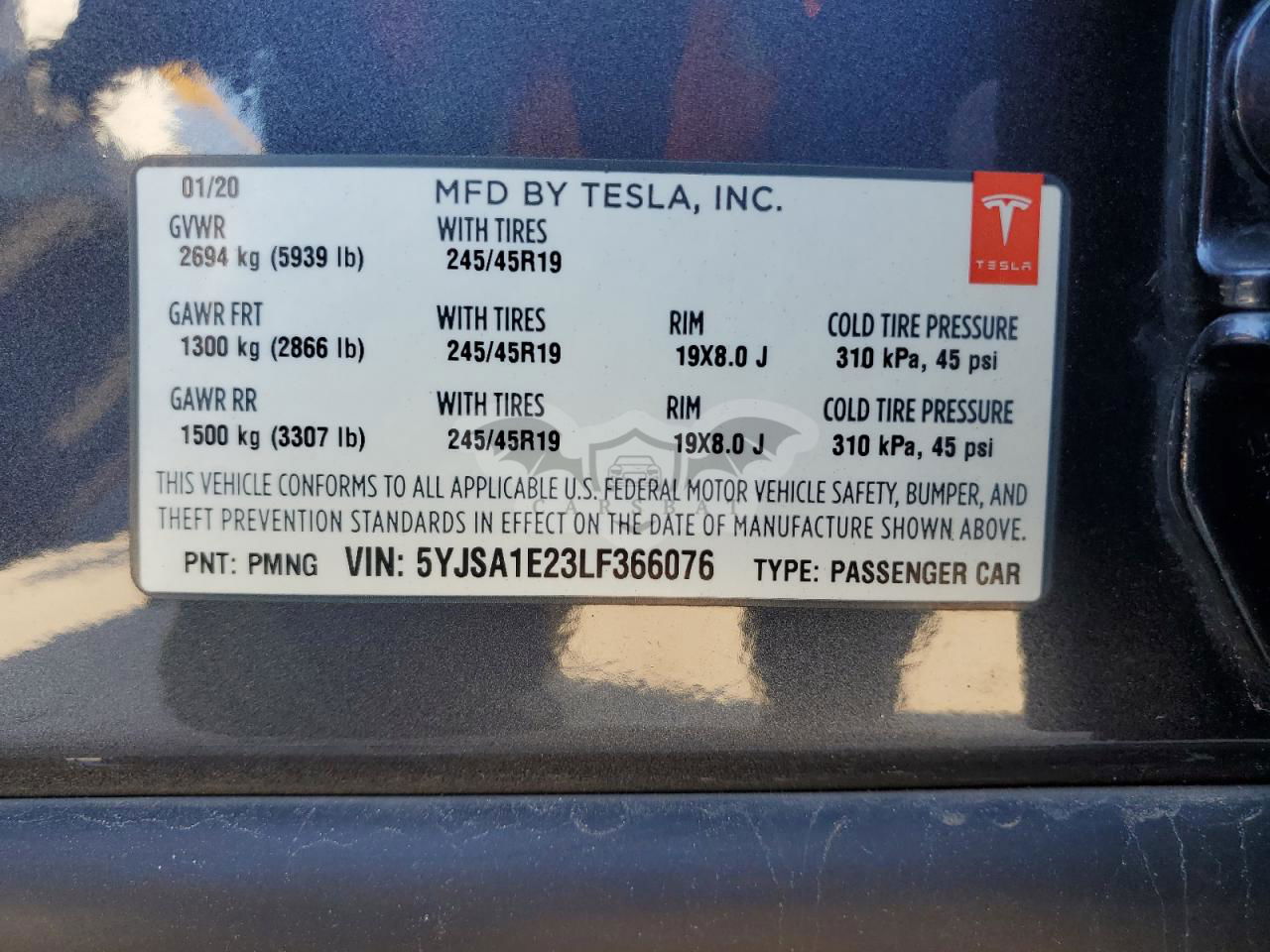 • VIN: 5YJSA1E23LF366076