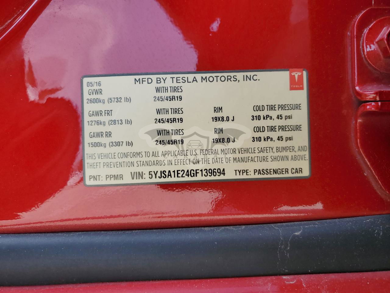 • VIN: 5YJSA1E24GF139694