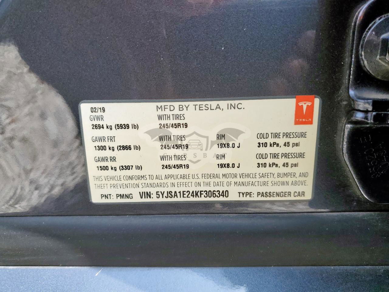 • VIN: 5YJSA1E24KF306340