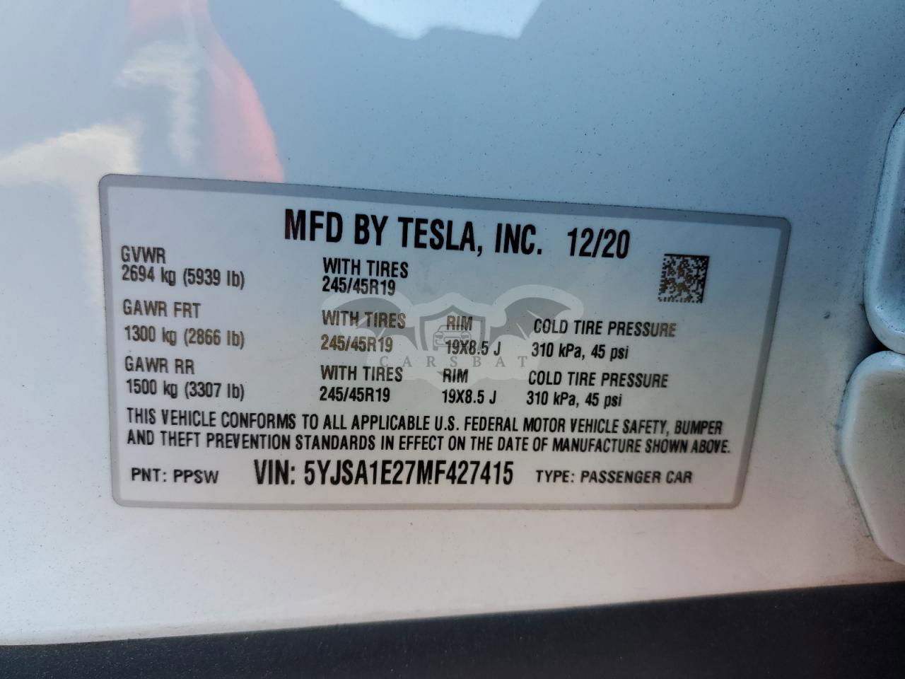 • VIN: 5YJSA1E27MF427415