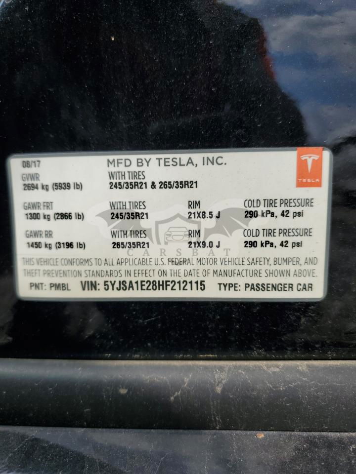 • VIN: 5YJSA1E28HF212115
