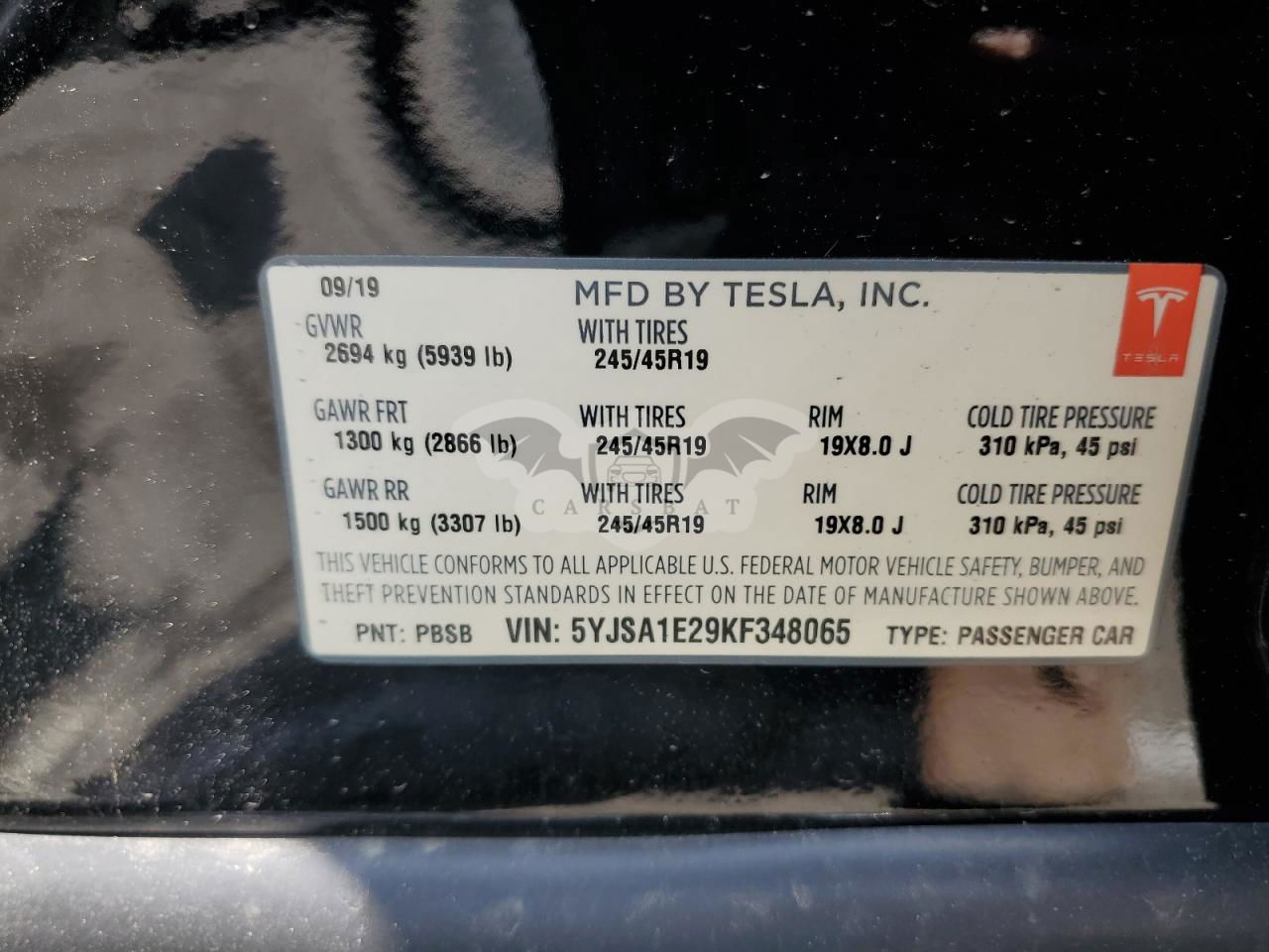 • VIN: 5YJSA1E29KF348065
