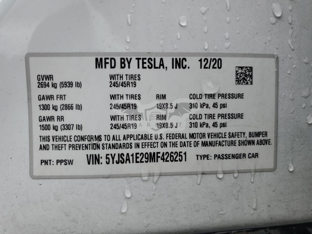 • VIN: 5YJSA1E29MF426251