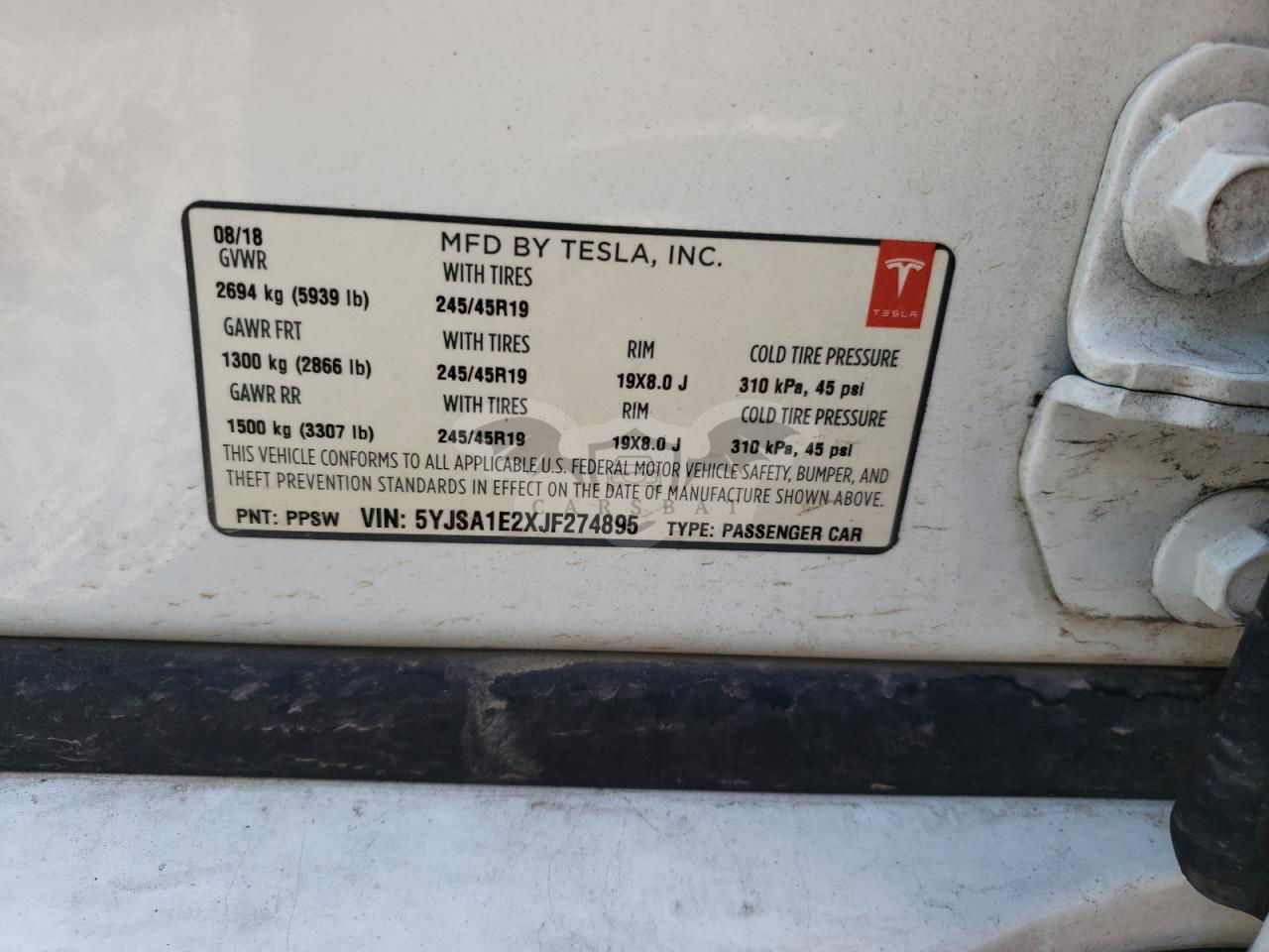 • VIN: 5YJSA1E2XJF274895