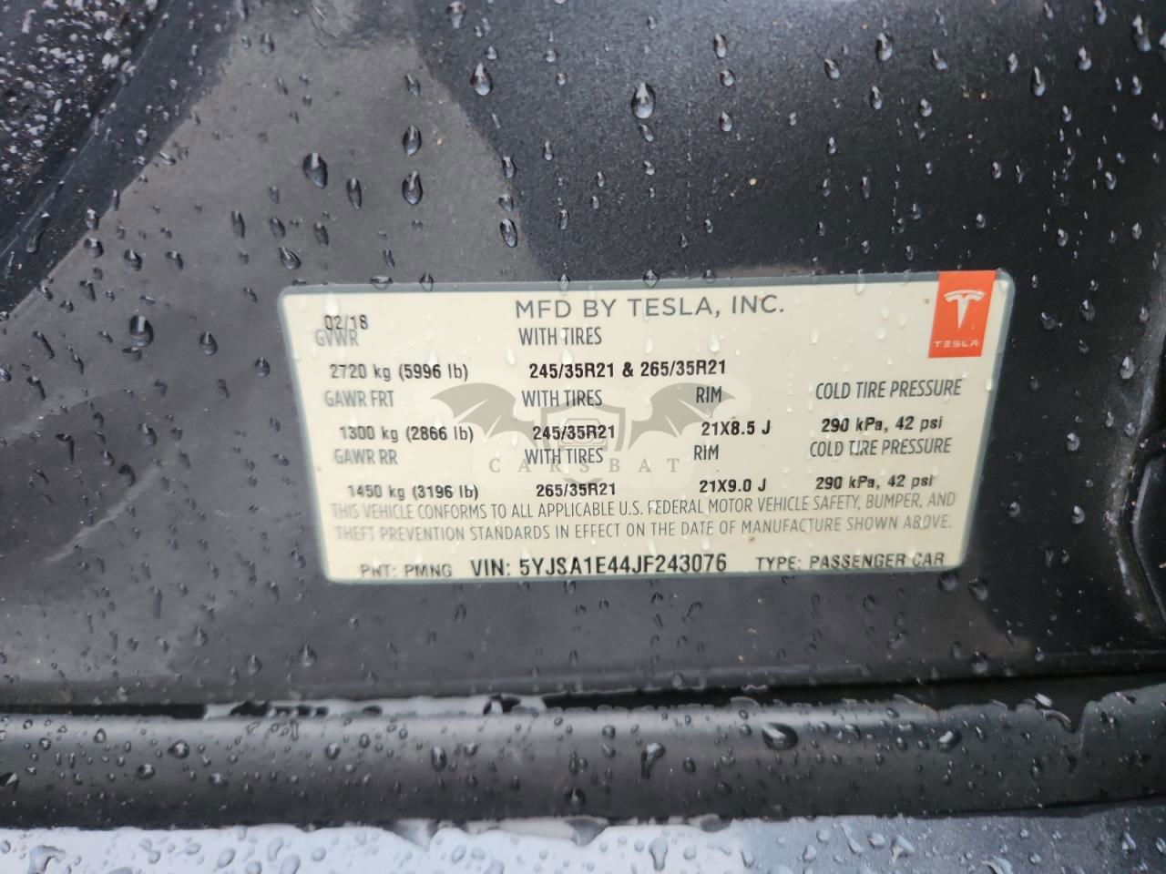 • VIN: 5YJSA1E44JF243076