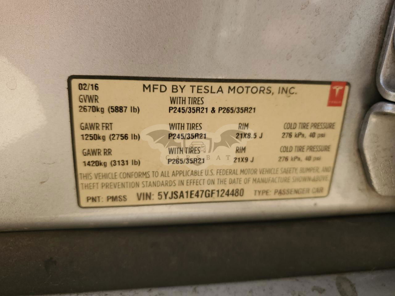 • VIN: 5YJSA1E47GF124480