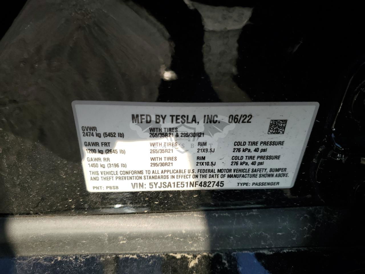 • VIN: 5YJSA1E51NF482745