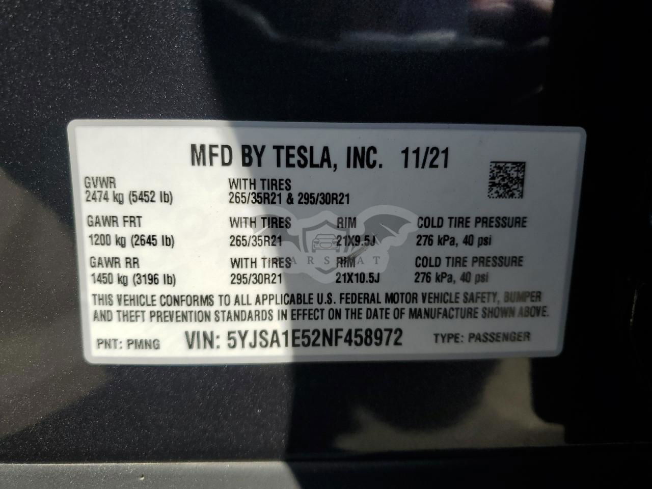 • VIN: 5YJSA1E52NF458972