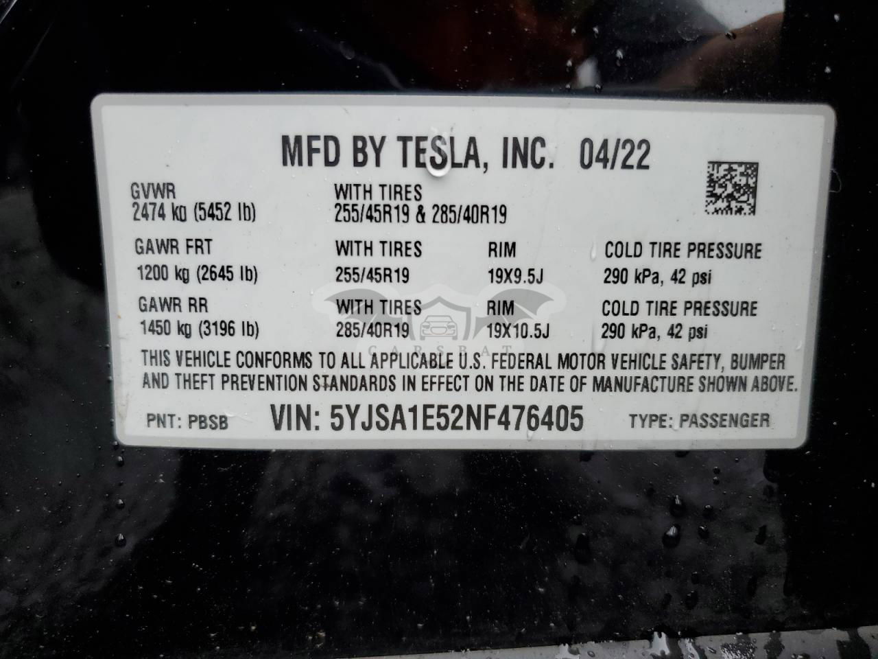 • VIN: 5YJSA1E52NF476405