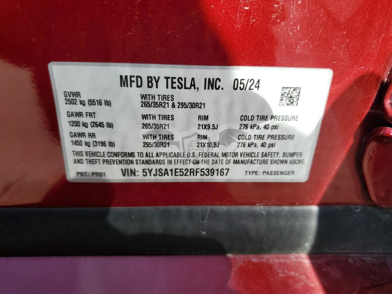 • VIN: 5YJSA1E52RF539167