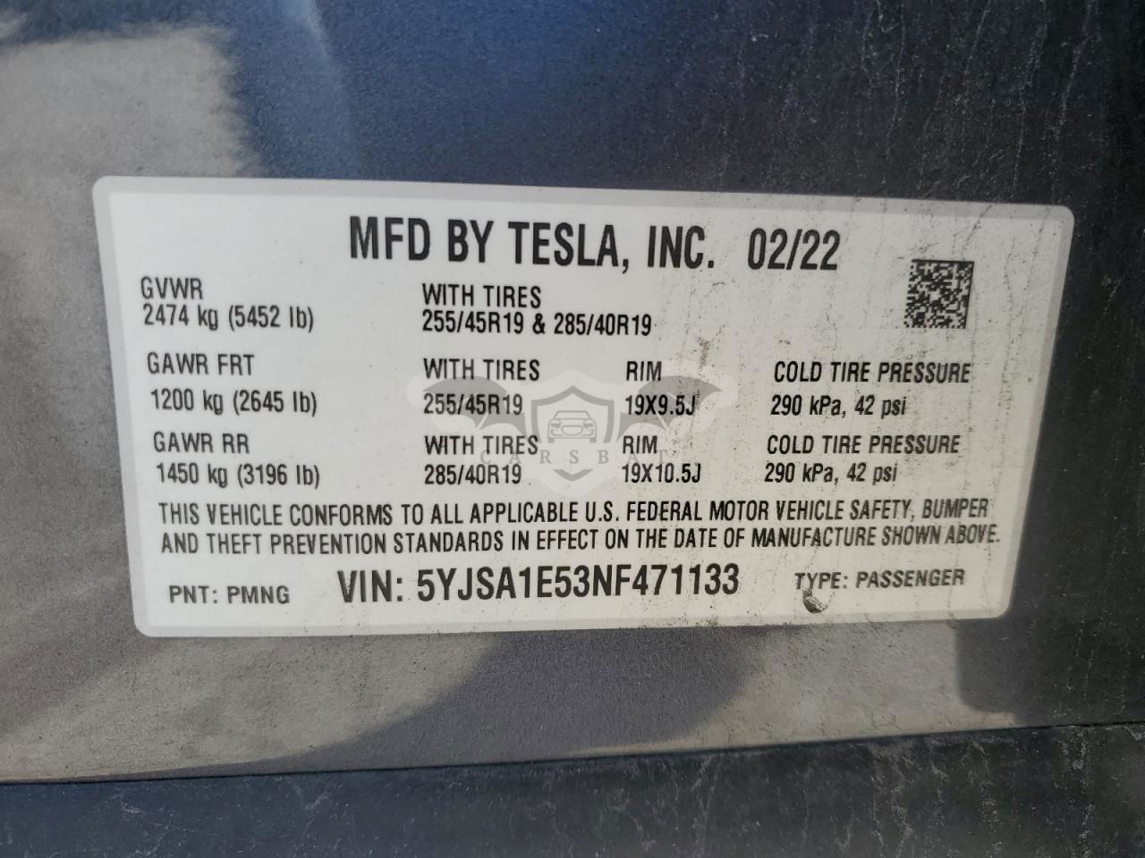 • VIN: 5YJSA1E53NF471133
