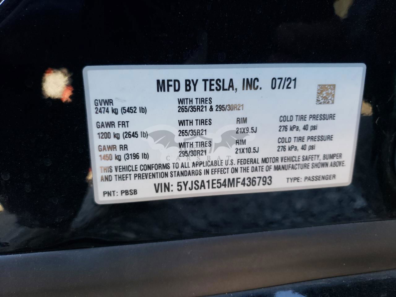 • VIN: 5YJSA1E54MF436793