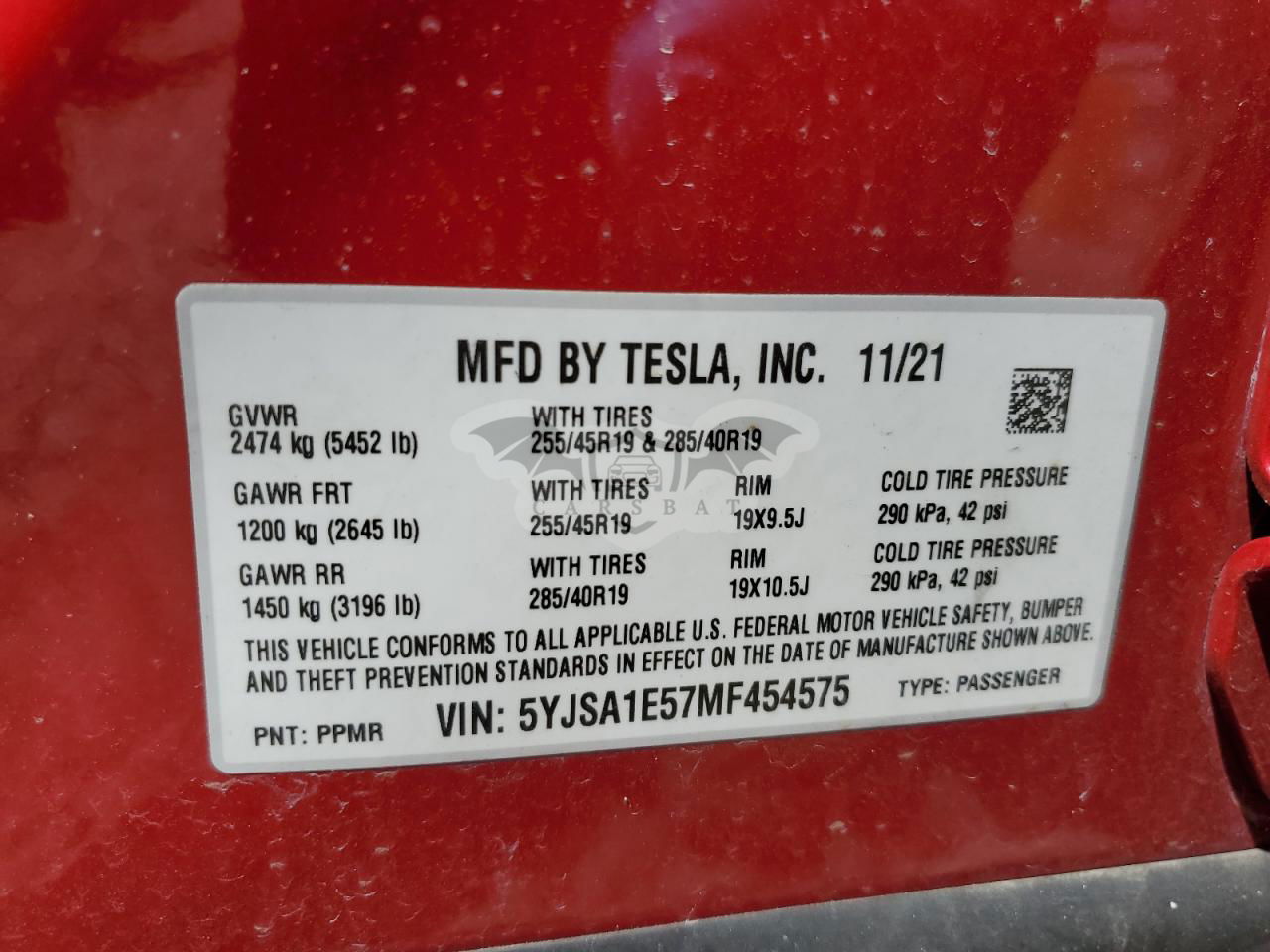 • VIN: 5YJSA1E57MF454575