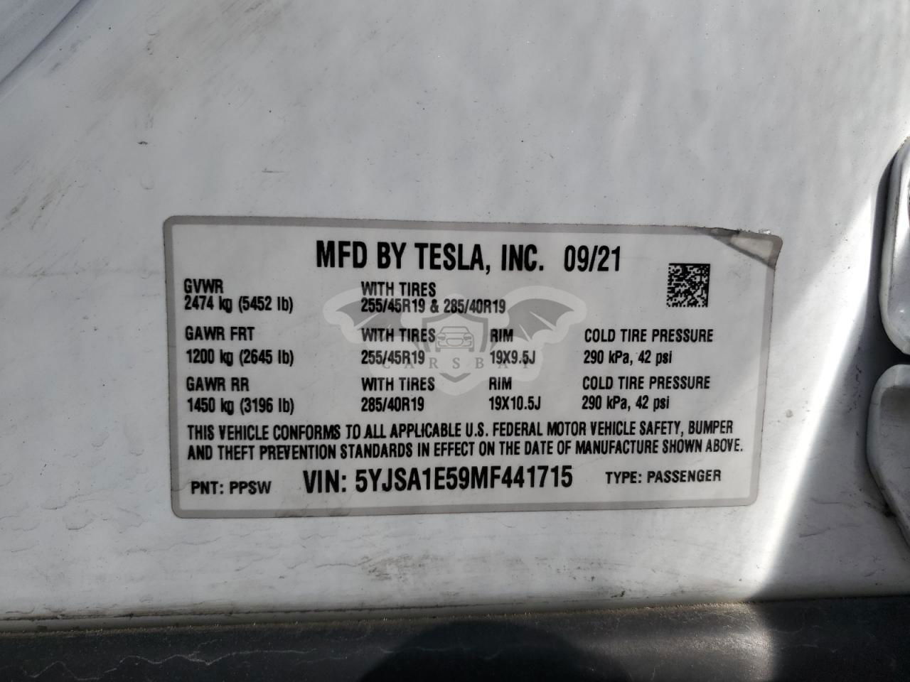 • VIN: 5YJSA1E59MF441715