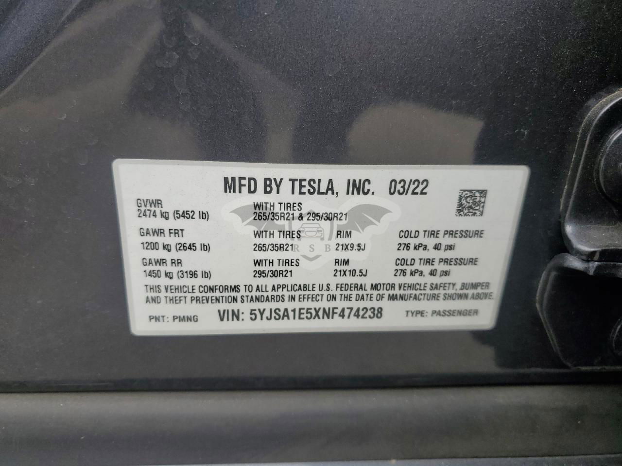 • VIN: 5YJSA1E5XNF474238