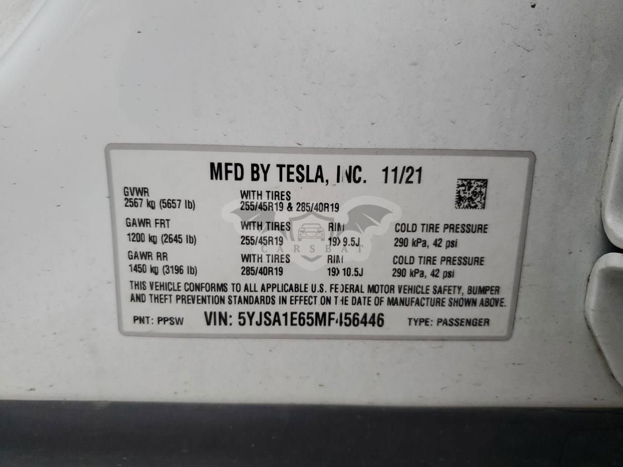 • VIN: 5YJSA1E65MF456446
