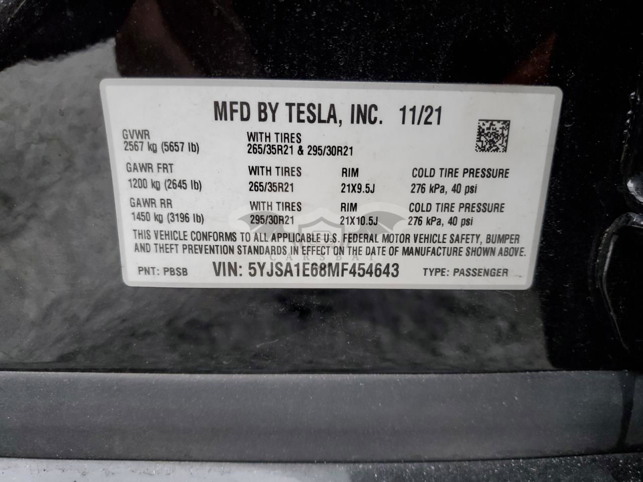 • VIN: 5YJSA1E68MF454643