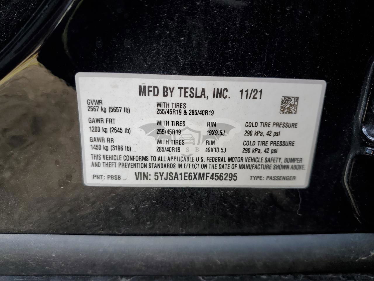 • VIN: 5YJSA1E6XMF456295