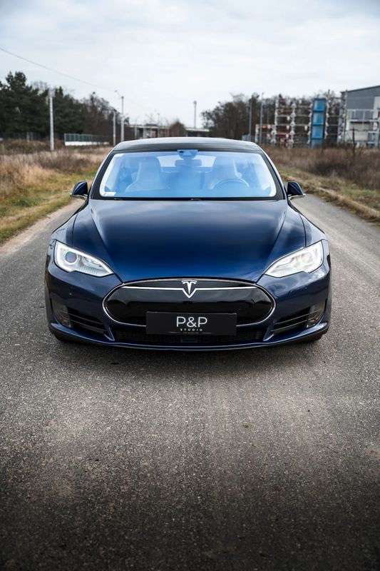Niebieski Tesla Model S Long Range 2015 roku | Elektryczny