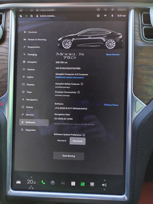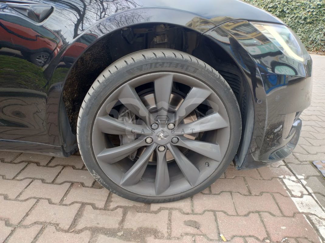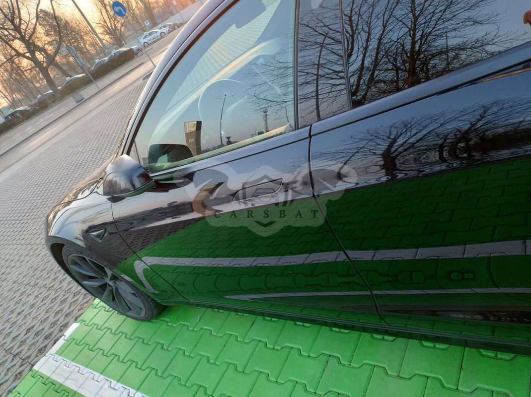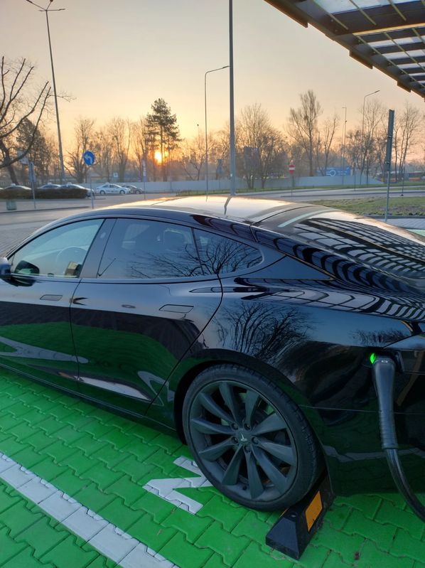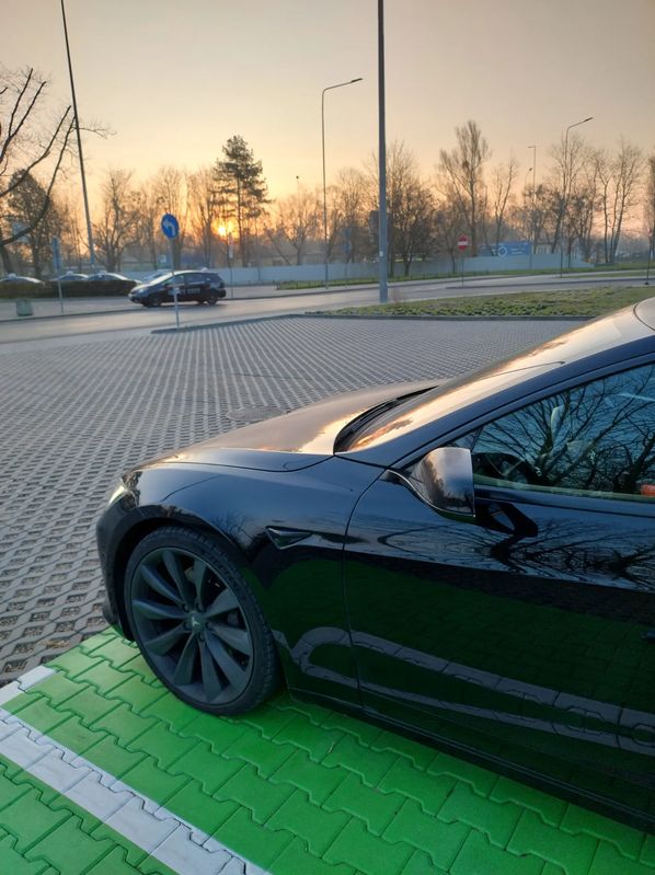CENA: 101.600 PLN + 23% VAT (do zapłaty z VAT: 124.968 PLN). Wystawiam pełną Fakturę VAT 23% (a nie fakturę marża !), co oznacza, że kupujący NIE MA obowiązku zapłaty 2% podatku PCC (np. jak przy kupnie na umowę kupna-sprzedaży). Z prądem ! Niestety, ale muszę wystawić na sprzedaż swoją „Czarną Mambę” ☹ Stąd jeśli ktoś poszukuje efektownie wyglądającej, szybkiej, wygodnej, pakownej Tesluni z wyświetlaczem przed sobą (=> czyli model S), a zarazem wystarczy mu do jazdy zasięg „Standard Range” (do 420 km zasięgu*) – to zapraszam. Więcej danych + wyróżniki: •Tesla Model S 75D (Dual Motor, pernamentne AWD, 75kWh, wersja “unlocked”, czyli 4,4 sek do setki, wersja poliftowa, już z nowymi fotelami Premium Seats) •Rocznik 2018 •WERSJA EUROPEJSKA, sprowadziłem ją dla siebie w wakacje ‘2023 z E.U. •Aktualnie przebieg 209.900 km (co kilka dni lekko rośnie, bo to jeden z dwóch moich daily carów) •Gwarancja na baterię i jednostkę napędową – BEZ LIMITU KILOMETRÓW !!! , ważna do 29.03.2026 •Usługa „Łączność Premium” – bezpłatna BEZTERMINOWO •Premium interior w kolorze czarnym - z szyberdachem, drewnem, sportowymi fotelami typu NextGen w pełnej skórze (wyglądają znacznie, znacznie lepiej od tych półskórzanych), podsufitka alcantara; stan wnętrza bardzo dobry •Nadwozie - wersja All-Black (zdechromizowana) •Felgi niskoprofilowe 21” – Sonic Carbon Turbine (S), dodatkowo tylne szersze (stąd to „S” w nazwie; dopłata do współczesnych felg 21” w konfiguratorze Modelu S - na dziś to aż 24.500 PLN) •Opony (letnie): oprzód: Michelin Pilot Sport 4S o rozmiarze 245/35/ZR21 96Y XL otył: Michelin Pilot Super Sport o rozmiarze 265/35/ZR21 101Y XL •Zawieszenie pneumatyczne (zakres 13-17cm) •Ładowanie AC do 17 kW (nie, to nie pomyłka - ładowanie w tym roczniku jeszcze jest 3F/24A ) * - przy 100% naładowania baterii i przy 9 stopniach C - auto pokazuje do 420 km zasięgu przy zadeklarowanych w/w felgach 21”. Dla zainteresowanych – oględziny w Warszawie / okolicach, czasem autem bywam też na Śląsku i na wschodzie Polski. Napisz do mnie, to wyślę Ci paczkę ze wszystkimi zdjęciami i filmem