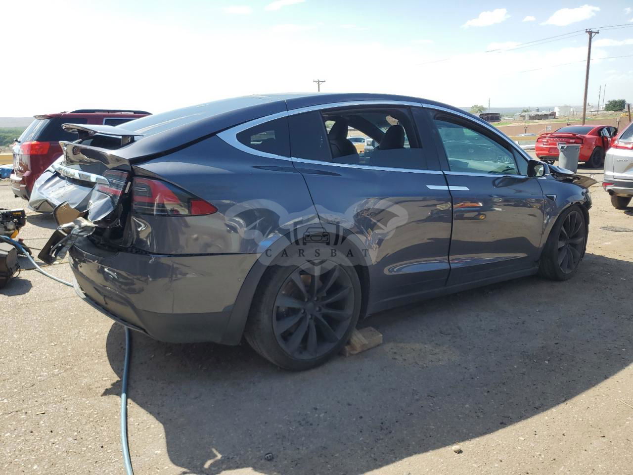 Ciemnoszary Tesla Model X 2021 roku | Elektryczny