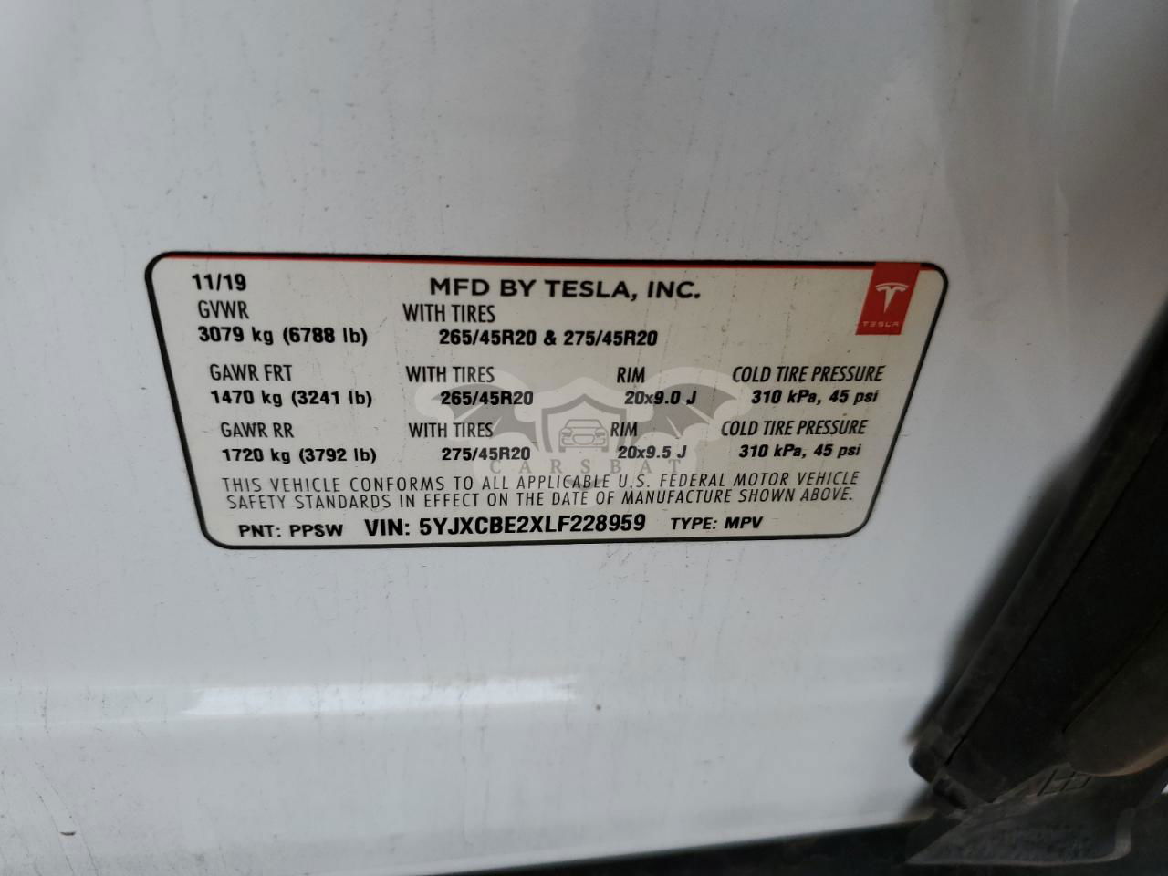 • VIN: 5YJXCBE2XLF228959