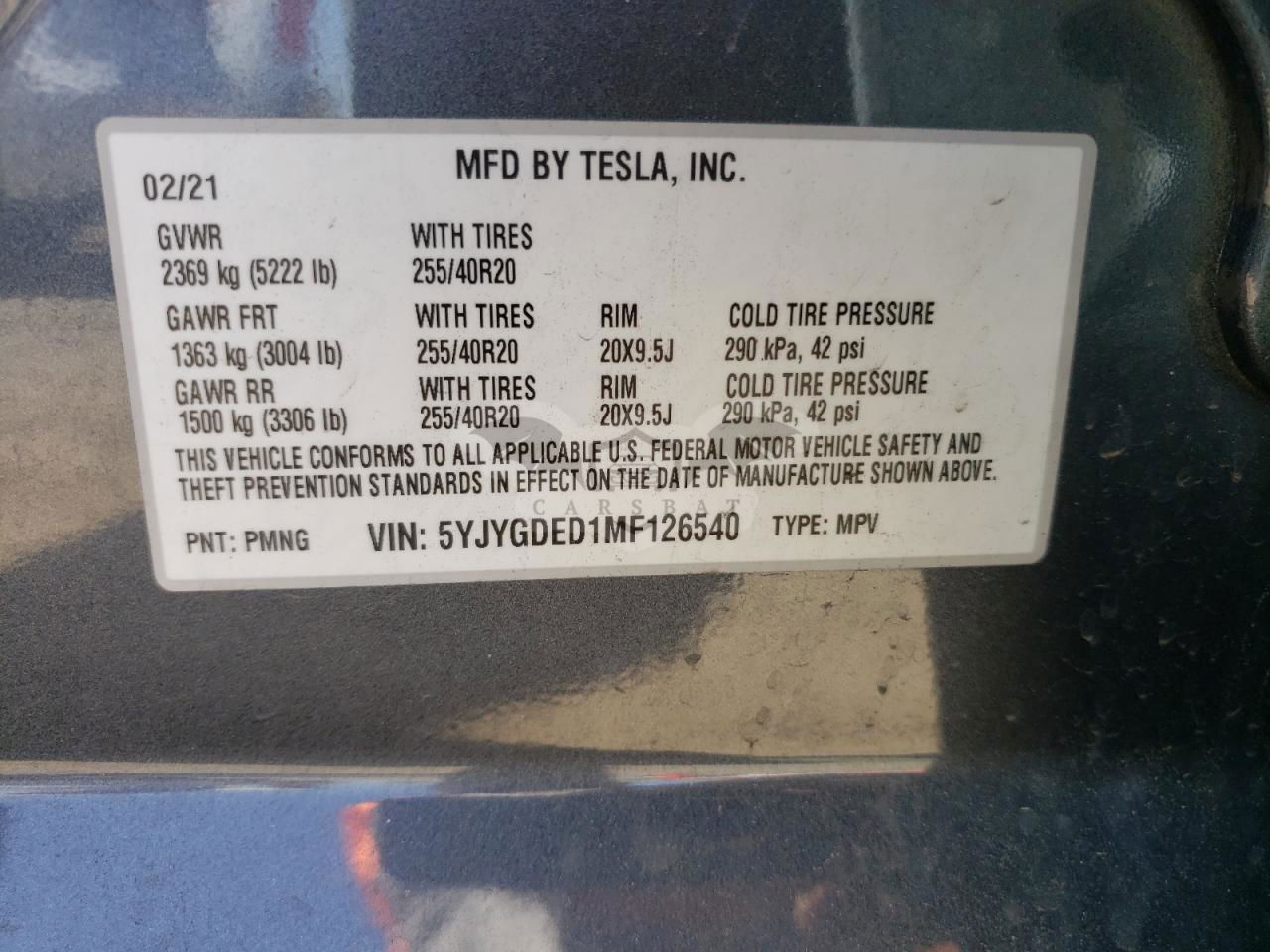 • VIN: 5YJYGDED1MF126540