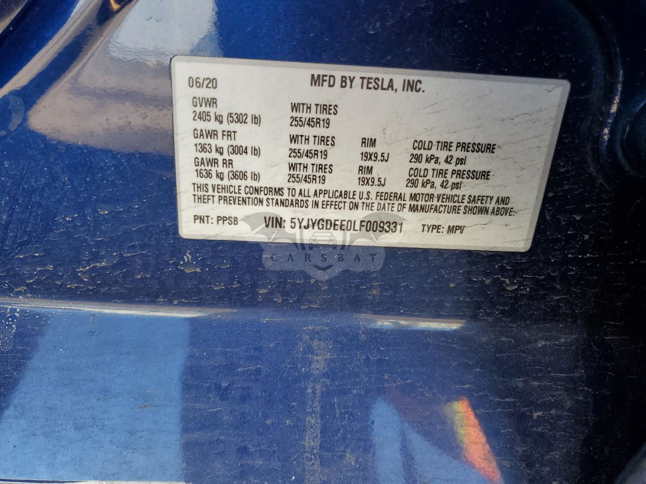 • VIN: 5YJYGDEE0LF009331