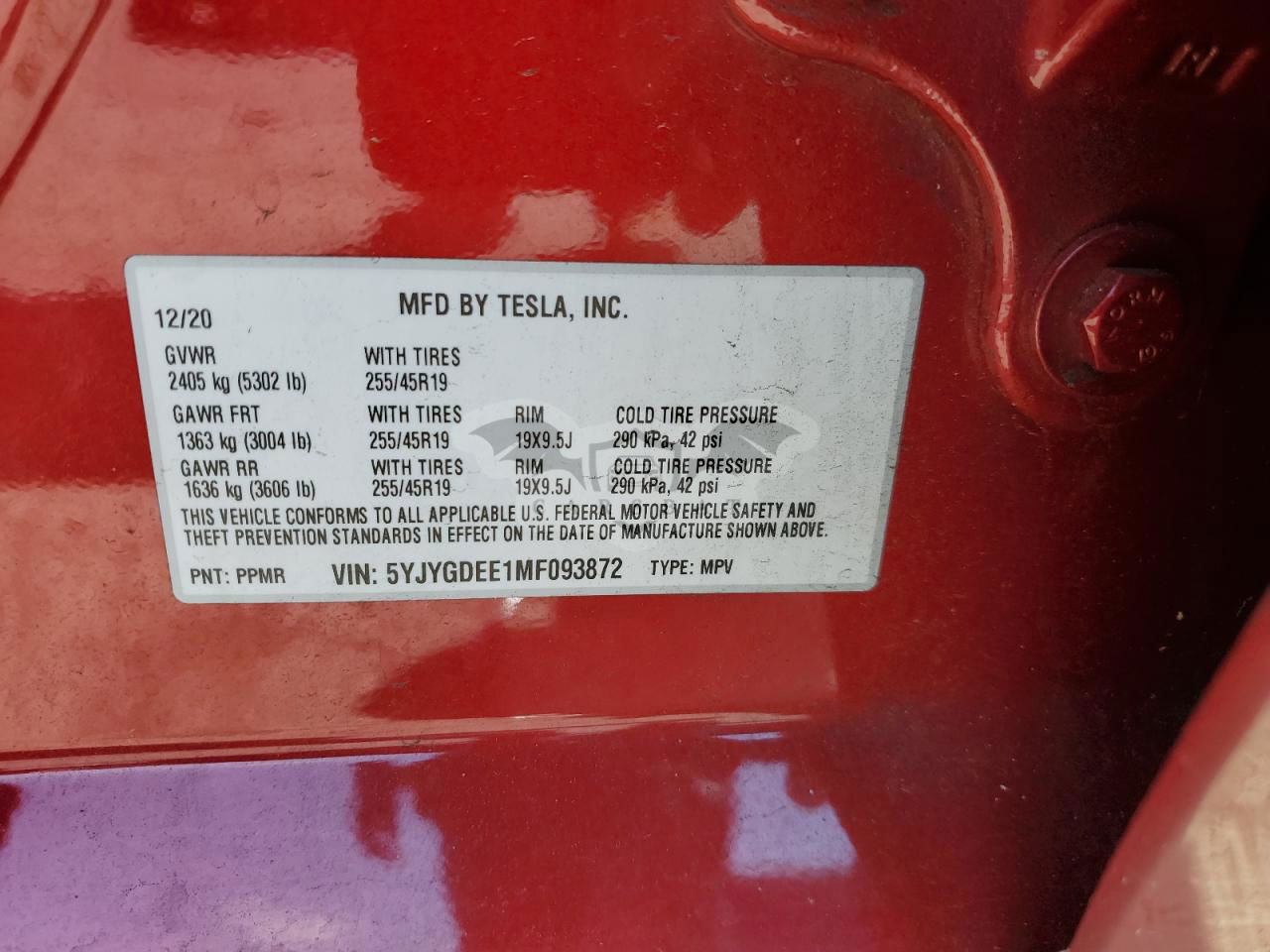 • VIN: 5YJYGDEE1MF093872