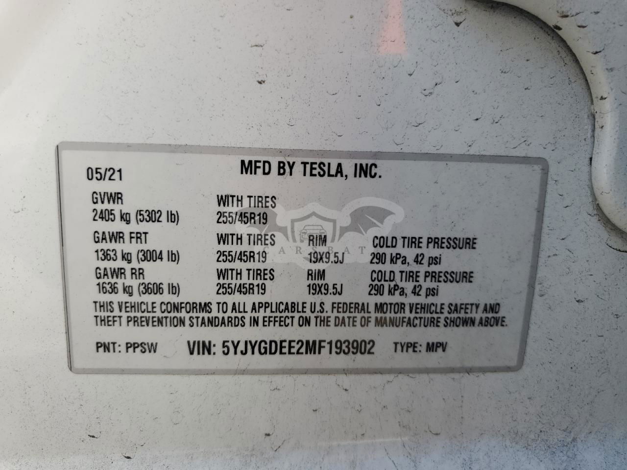 • VIN: 5YJYGDEE2MF193902