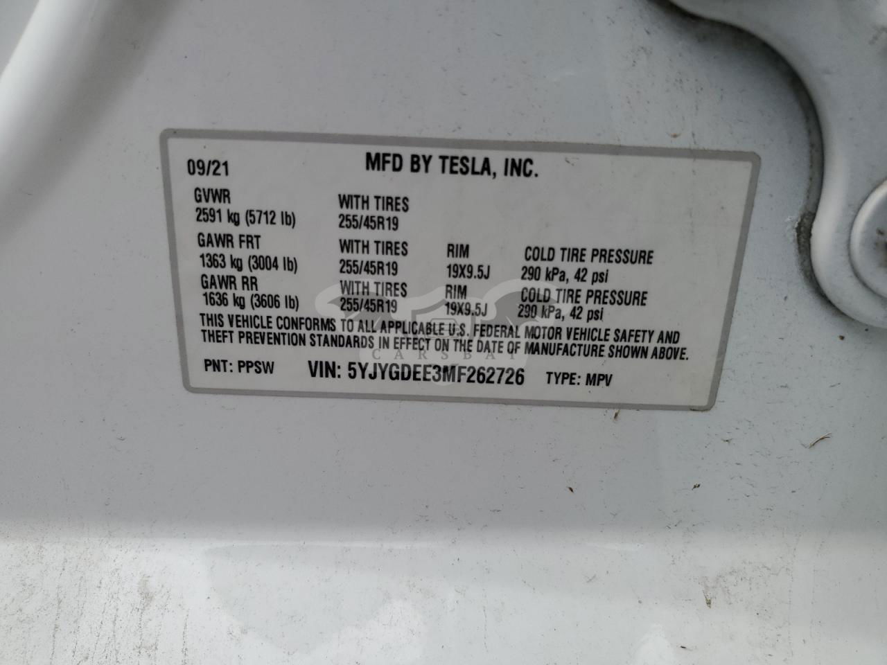 • VIN: 5YJYGDEE3MF262726