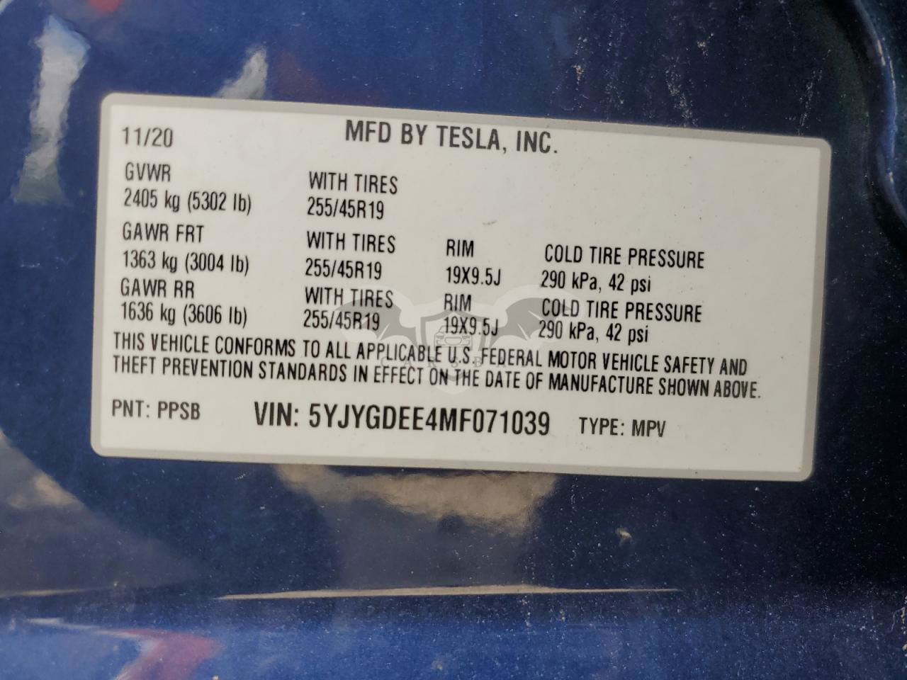 • VIN: 5YJYGDEE4MF071039